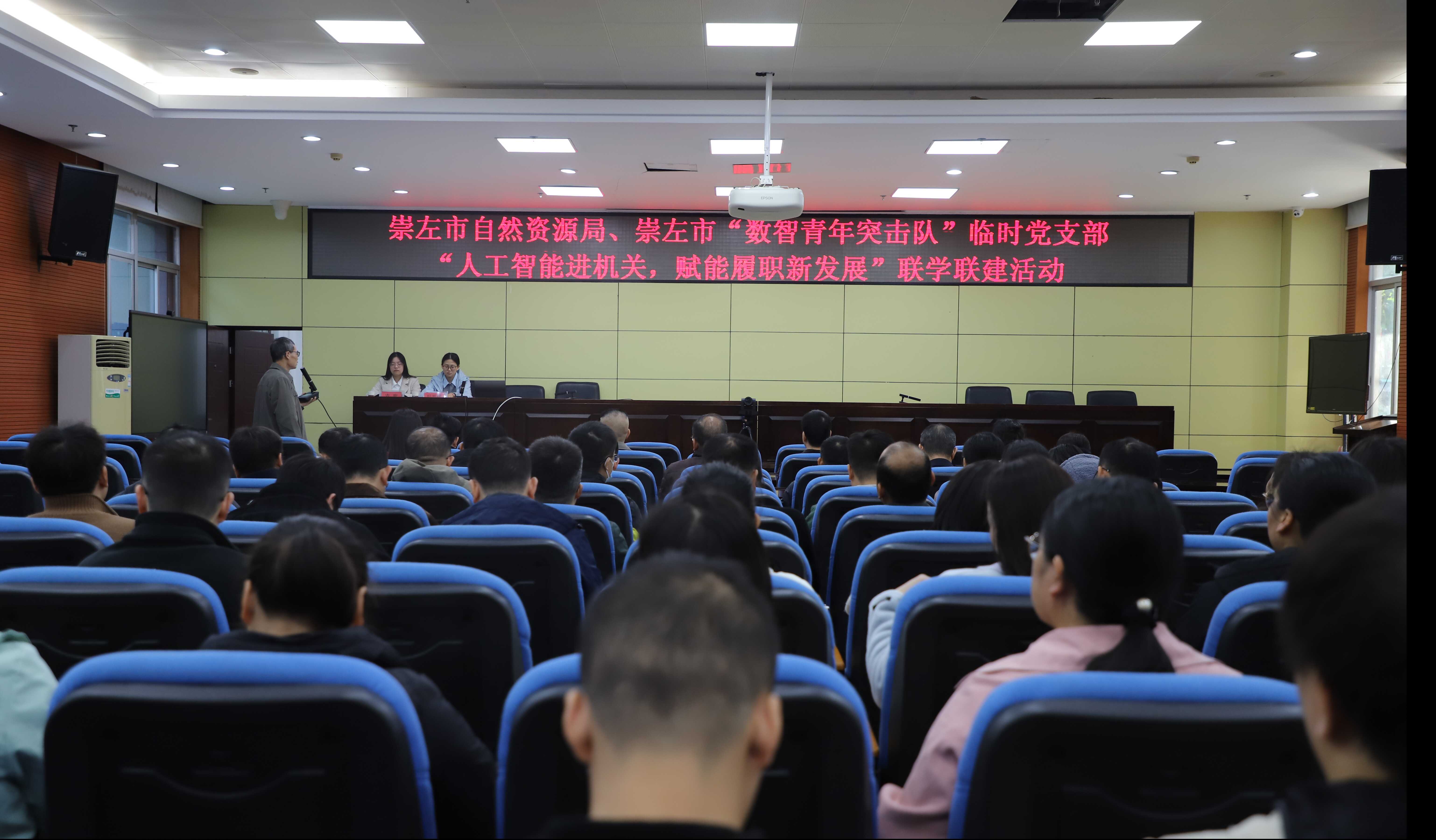12月18日上午,崇左市自然资源局联合市“数智青年突击队”临时党支部,在市自然资源局一楼大会议室开展“人工智能进机关,赋能履职新发展”联学联建活动,旨在深入贯彻落实习近平总书记关于人工智能的重要论述,切实提升干部数智素养与履职能力。
